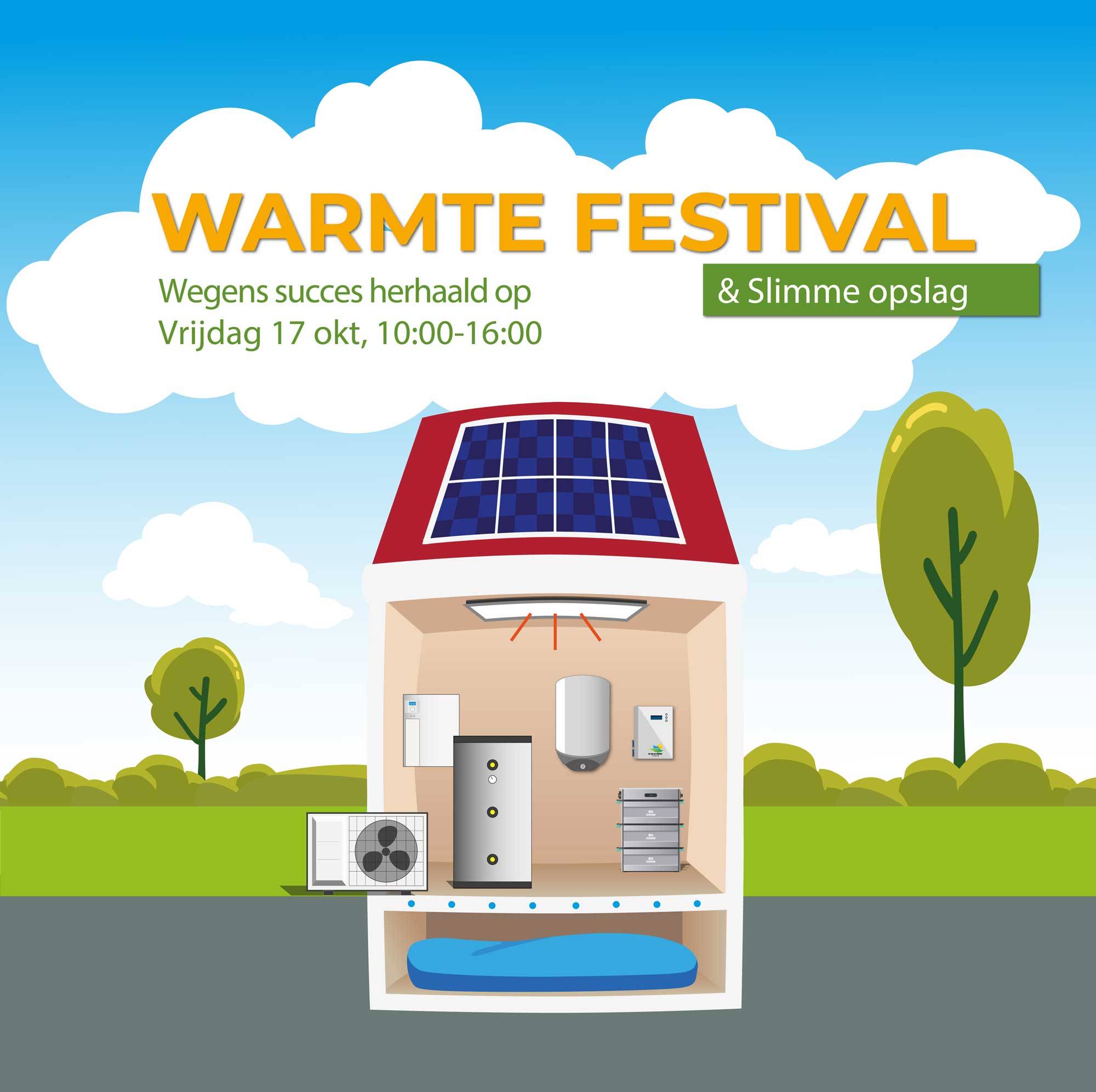 Lees meerWegens succes hebben we het ‘Warmte en Slimme Opslag’  Festival verlengd. Op vrijdag 17 oktober staan we opnieuw klaar voor uw vragen.